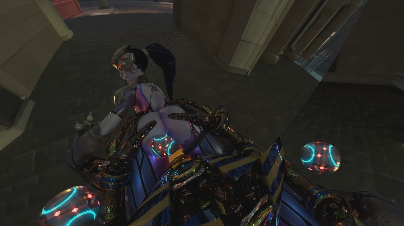 The tension builds quick, especially in the steamy close-up moments where their chemistry just pops off the screen. I mean, the way Widow’s intensity clashes with Zenyatta’s cool vibe? It’s electric, bro. Every glance and movement feels so damn real in immersive VR, you’re right there with ‘em.