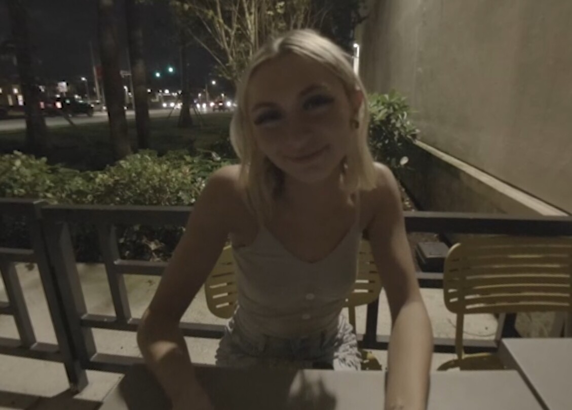 You are grabbing some bite to eat and see a sexy blonde by herself at a table so you head over right away and strike up a conversation. She is cool and you use the you could be a model line and it works like a charm. She is even ready to meet you later same night.