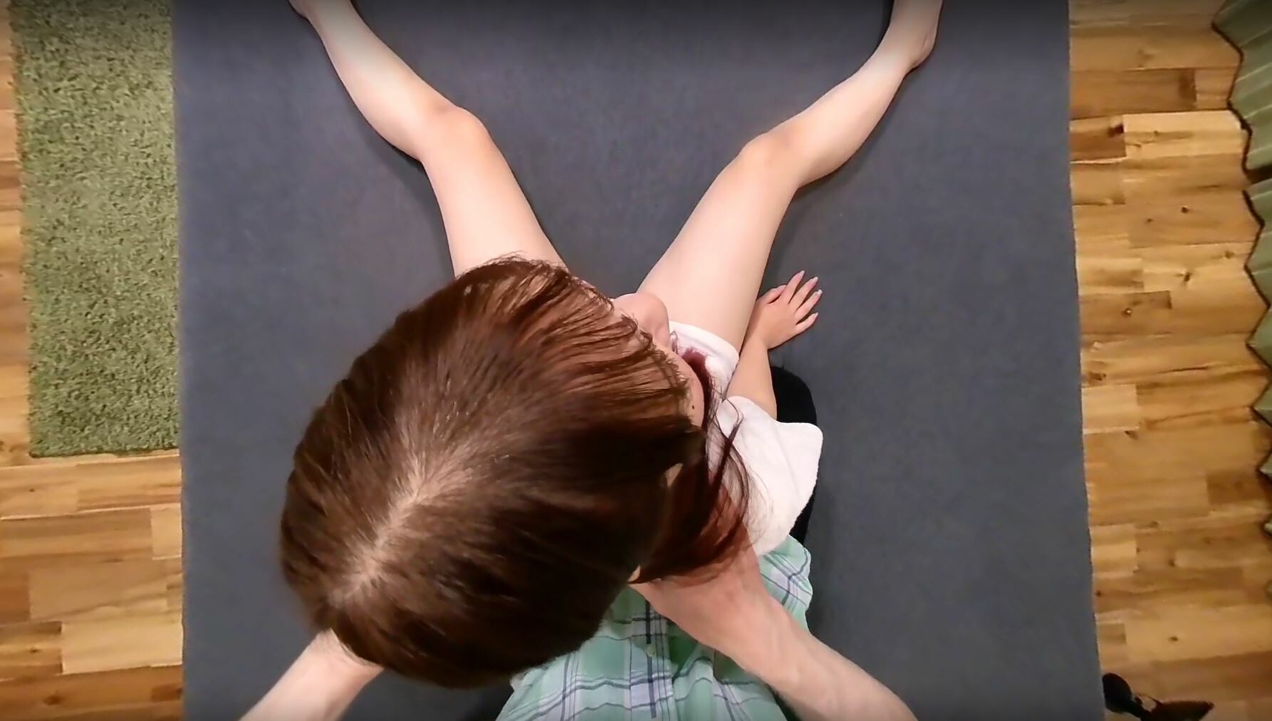 Returning home to adorable sweetie Natsumi is always a pleasure. As she does her daily stretch routine, I can’t help but massage her shoulders. Natsumi takes great care of herself, so her smooth skin feels lovely to the touch. My pervy hands soon find their way to her perky breasts and next our tongues are entwined. This is a nice way to come home…