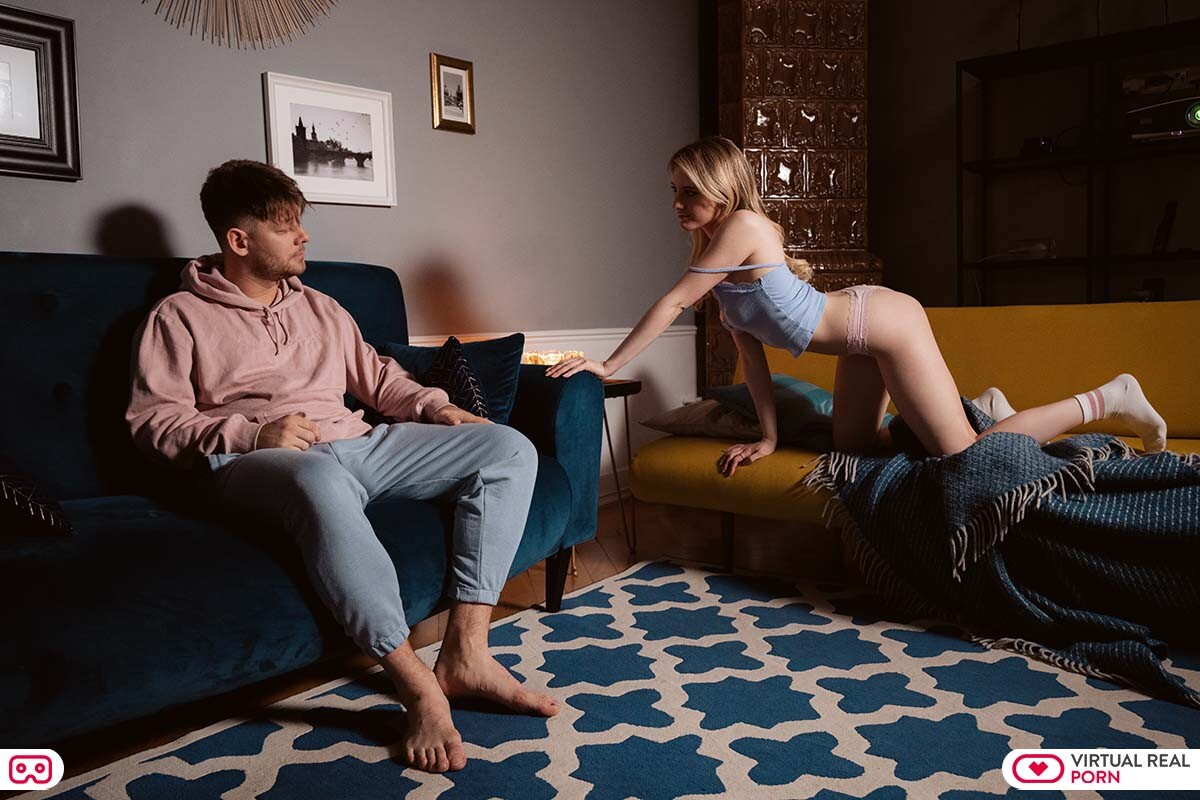 Your blonde VR girlfriend, Melody Marks, takes a quick shuteye while the two of you are watching a movie. After the film, Melody finally comes out of her shallow slumber. She teasingly approaches you and tells you that she has a dream about you. The gorgeous hottie with natural tits doesn’t give you any specifics about her dream, but she wants you to come with her to the bedroom. To motivate you into following her to the room, Melody gives you a quick blowjob on the couch. Without wasting any moment, you give Melody the satisfaction she desires. You make love with the beautiful babe in missionary and doggystyle. Melody returns the pleasure by riding on top of you in reverse cowgirl and cowgirl until you cum.