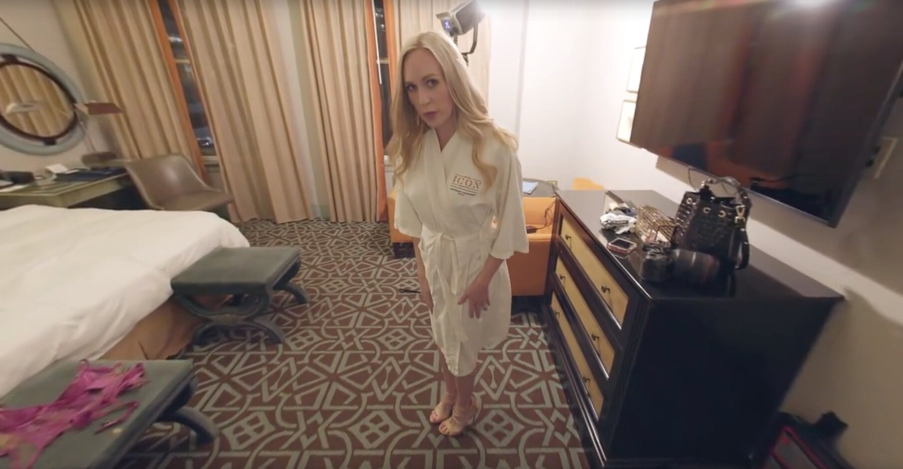 As part of the hotel security staff, it’s your job to check on the odd things that people report. Late one night, you get a report of a bright light in a room window. You knock and Sierra Spunk answers in a robe. She leads you in to show that it’s just a light from the photoshoot she was doing before her husband left to go to the bar. She WAS going to clean up and meet him, but since you are cute she has other plans. She gives you his camera to take more pictures of her. One thing leads to another with this horny housewife and you now have something to hide from your wife. She won’t clean up either and she will leave your mess on her for later.
