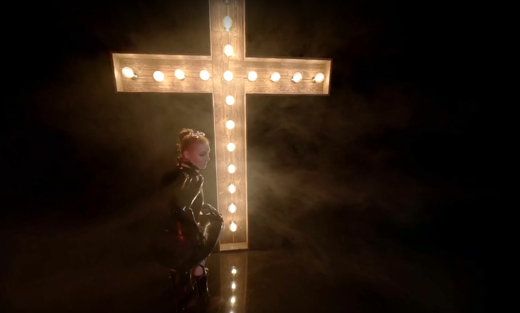 Sophie B Black Wet-Look Dress with Black Stockings - 8K VR