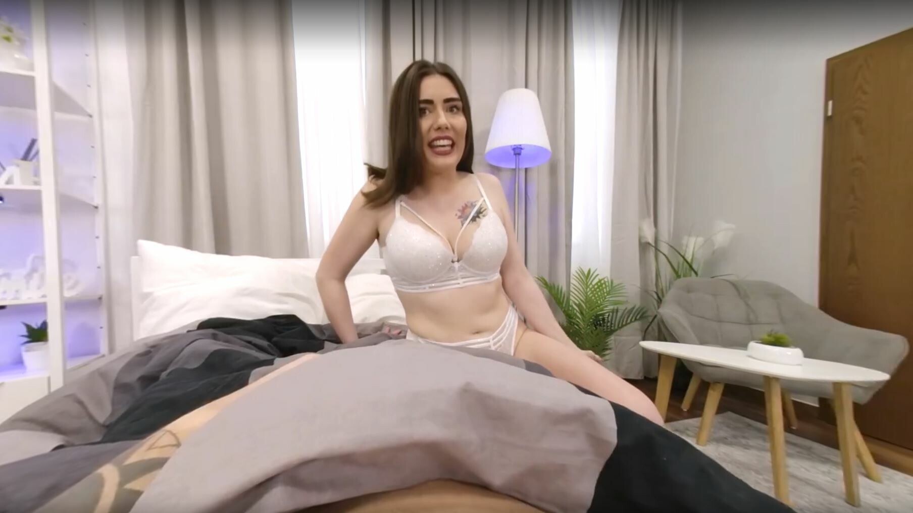 Man, I gotta tell ya, diving into this VR scene with Aleya Sun by Squeeze VR is somethin’ else. Right from the start, Aleya’s got this magnetic pull—her eyes lock with yours through the headset, and you’re hooked. It’s like she’s right there, and the 4K clarity makes every detail pop in a way that’s just unreal.