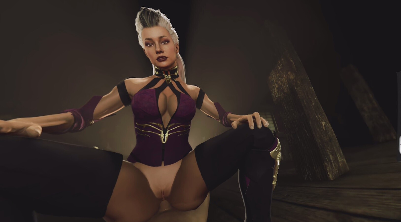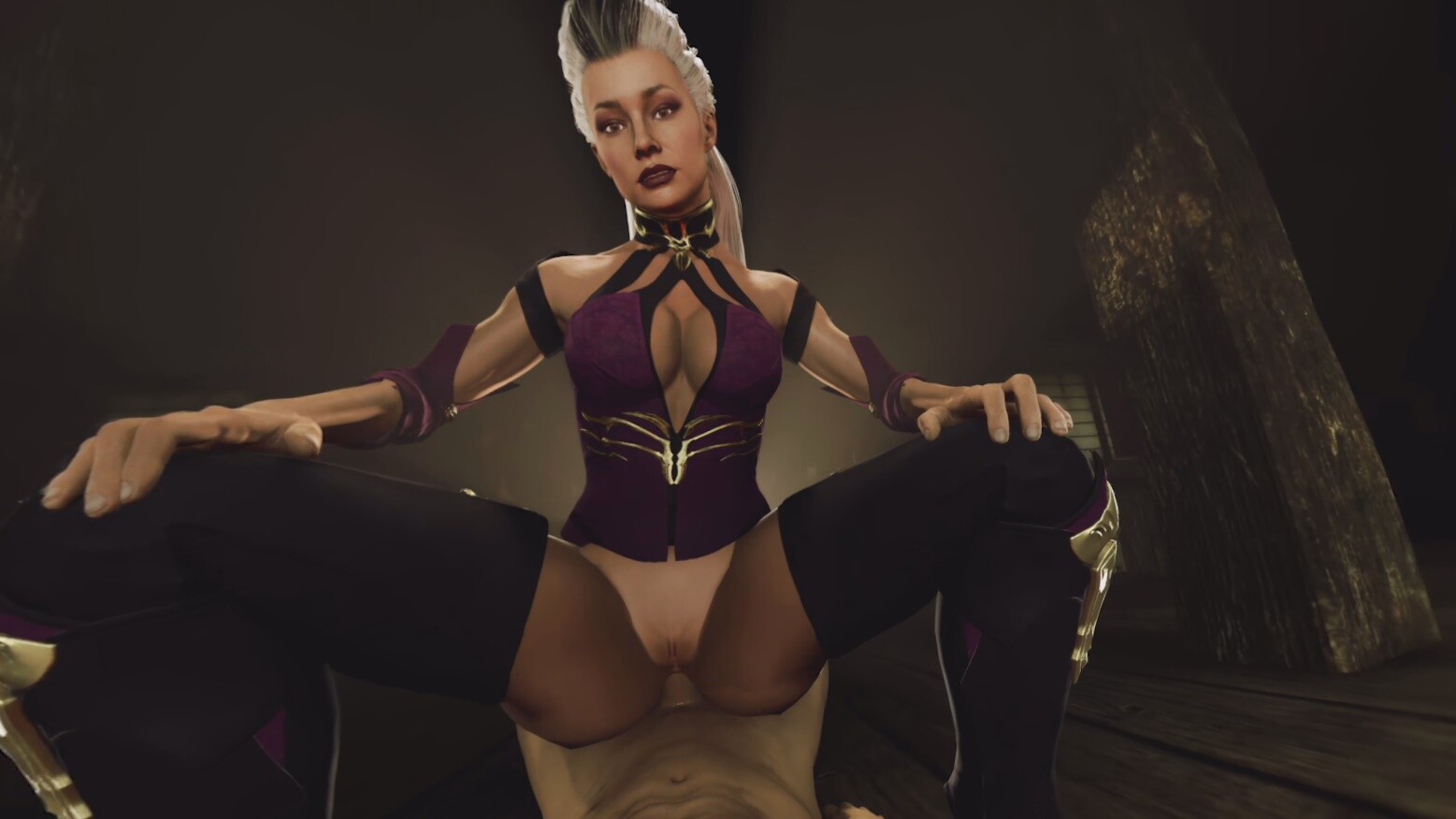 The tension builds quick, especially in the cowgirl scene where Sindel takes control—her intensity just hits different, ya know? Every move, every glance, it’s like she’s daring you to keep up. Then, the shift to reverse cowgirl ramps up the heat even more; the way she locks eyes through the immersive VR, it’s almost too much to handle.