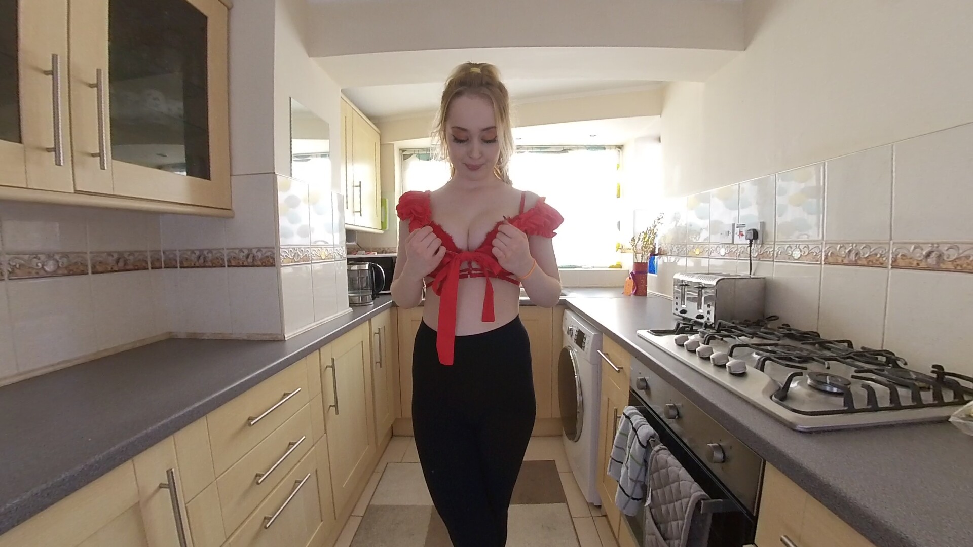 Man, I gotta say, diving into this Ellie Louise VR flick was somethin’ else. Right from the jump, Ellie Louise grabs your attention with that sly, seductive vibe as she plays out this rent payment fantasy. You’re pulled into her world, feelin’ like you’re right there, caught in the tension of her little dilemma.