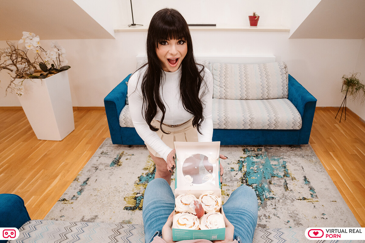 You have prepared a sweet surprise for your VR girlfriend, Nadja Lapierda, this April Fool’s Day. The gorgeous tattooed hottie can’t help but feel excited as she sees you holding a box of sticky buns near your crotch. She knows exactly what will happen if she opens the box. Nadja drops on her knees to lick the cream off the tip of your shaft before giving you a sticky blowjob. She then teasingly rides on top of you in cowgirl and reverse cowgirl. You can’t help but admire her bouncy big tits and ass while you make love with her in missionary and doggystyle. Nadja moans in delight as she feels your stiff rod digging deeper into her behind while you tirelessly move your hips. After the intense anal on the couch, Nadja gives you a handjob until you cum all over her tattooed belly.
