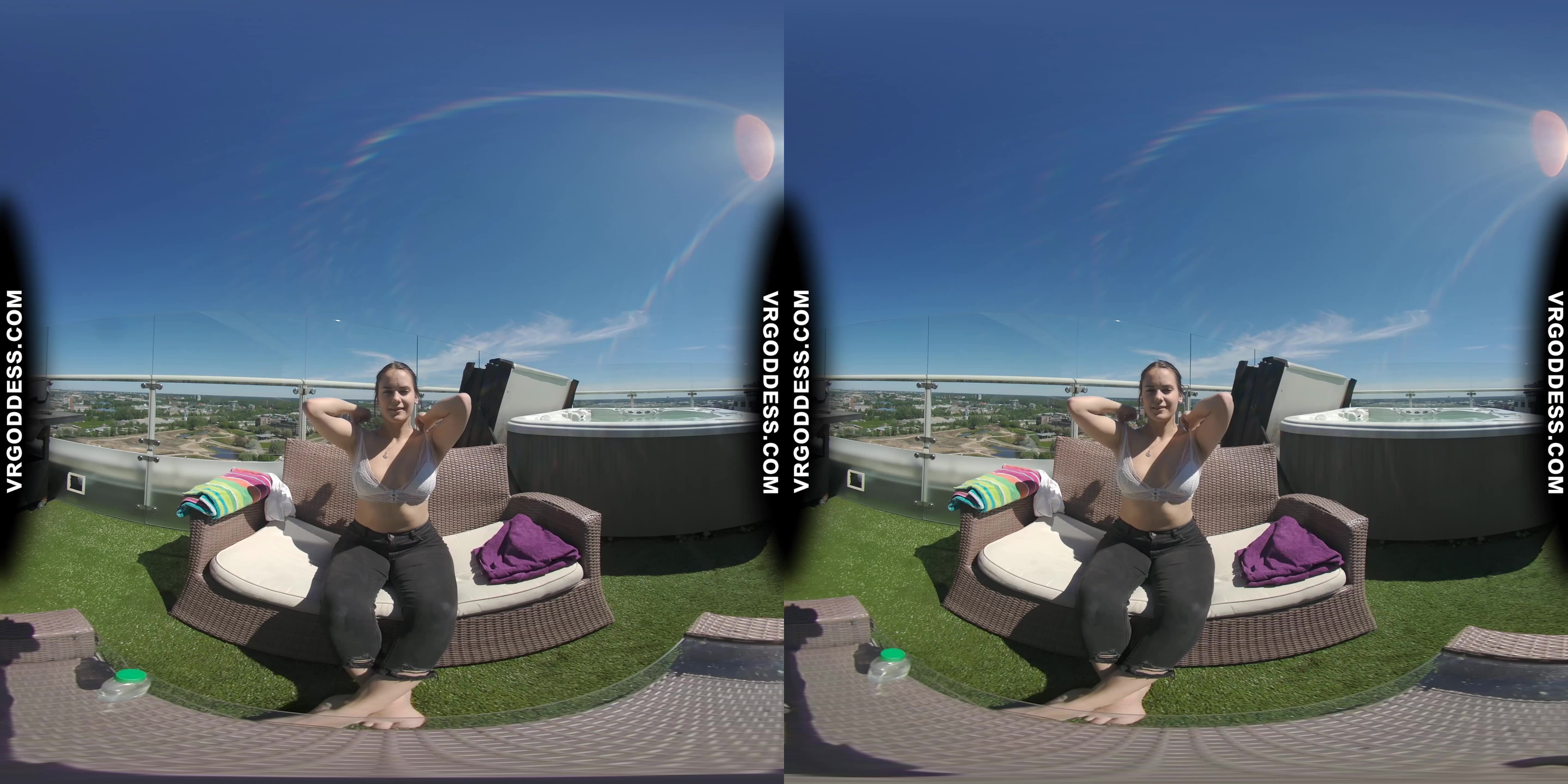 Man, I gotta tell ya, watching Rosalina in this rooftop solo scene is somethin’ else. Right from the start, she’s got this playful college girl vibe, basking in the sunny afternoon glow, and honestly, it’s freakin’ captivating. You can feel the warmth of the day as she teases, her natural beauty just shining through in crystal-clear 4K VR.