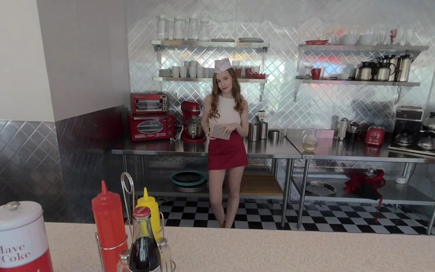 Blonde waitress Aina Smith serves up steamy passion in this immersive VR scene. Experience her seductive charm in stockings, delivering intense moments that thrill. Feel every pulse of desire in stunning clarity!
